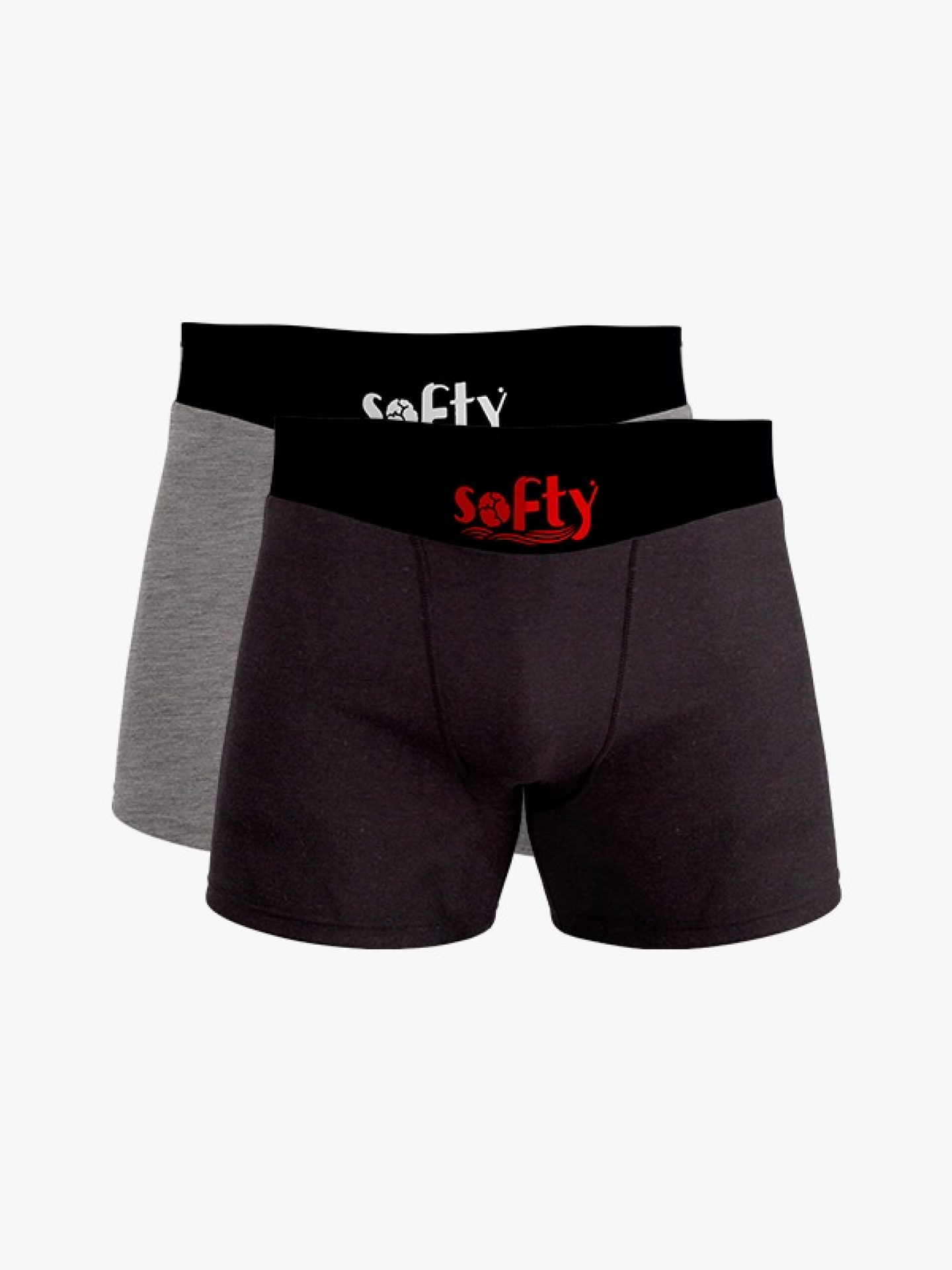 Softy 2’li Pamuk Penye Erkek Boxer Seti – Premium Kutulu, Nefes Alan, Likralı Siyah Gri
