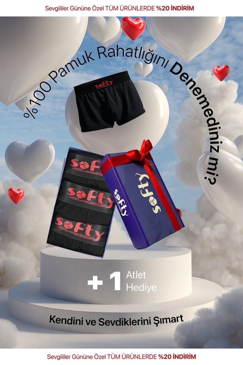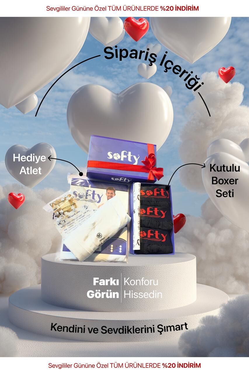 Softy Sevgililer Günü Özel Kutulu Set – 3 Boxer + Atlet Hediye